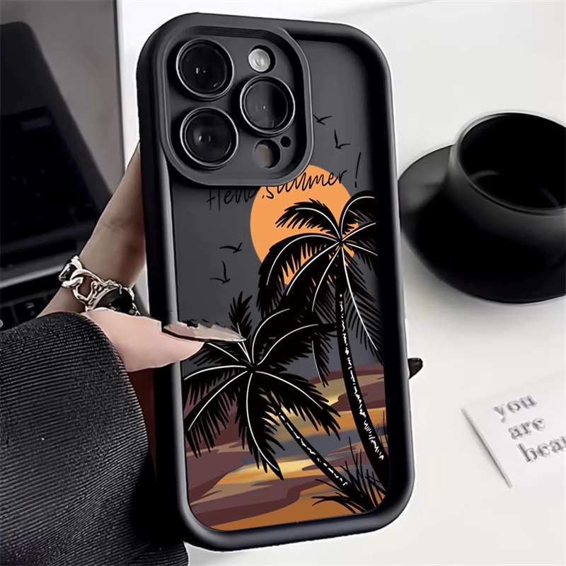 Caixa De Silicone Para Telefone De Coqueiro Ao Pôr-Do-Sol Xiaomi Redmi 13C 12C 12 4G Nota 13 12 11 10 11S 10S 9 Pro Plus Capa De Cor Doce À Prova De Choque