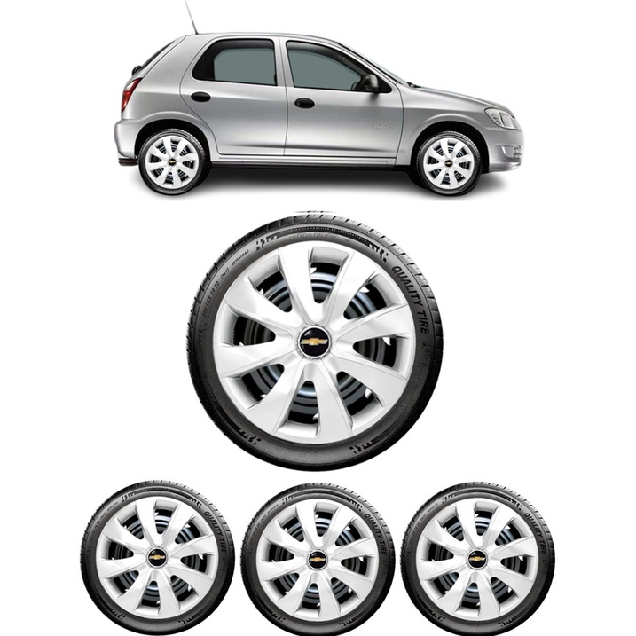 Jogo 4 Calota Esportiva Prime Prata Aro 13 GM Chevrolet Celta 2002 2003 2004 2005 2006 2007 2008 2009 2010 2011 2012