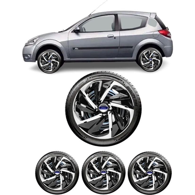 Jogo 4 Calota Esportiva Preto/Pata Aro 13 Ford Ka 96 97 98 99 2000 2002 2003 2004 2005 2006 2007 2008 2009 2010 2011 12