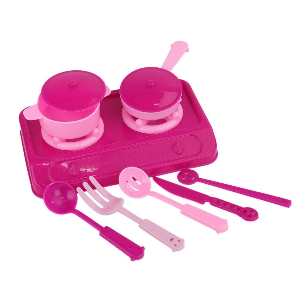 Brinquedo Kit Cozinha Infantil de Plástico 10 Peças Divertida Rosa