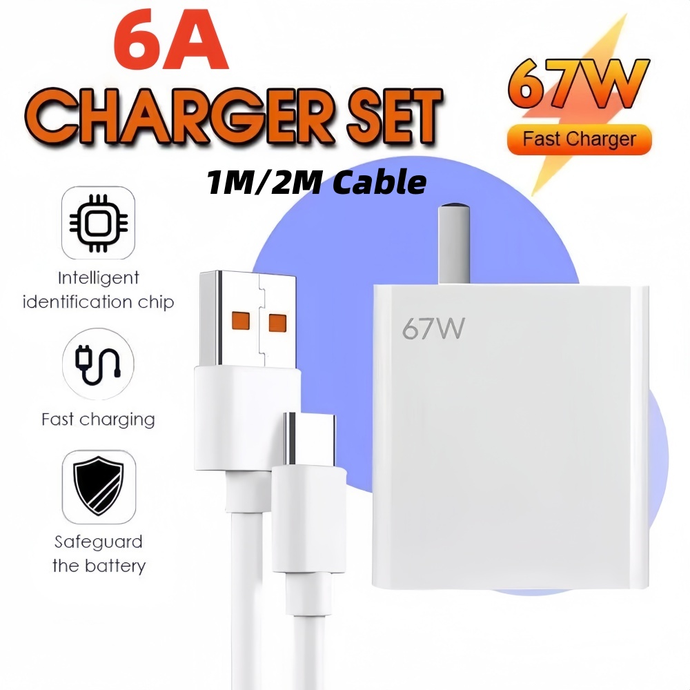 Carregador rápido de 120W 67W com 6A USB C cabo 1M para Mi Turbo Charge Turbo Power Cabo USB + Cabo Tipo C