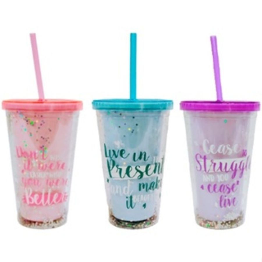 Copo Acrilico Parede Dupla 500 ML Com Canudo e Tampa Rosqueavél