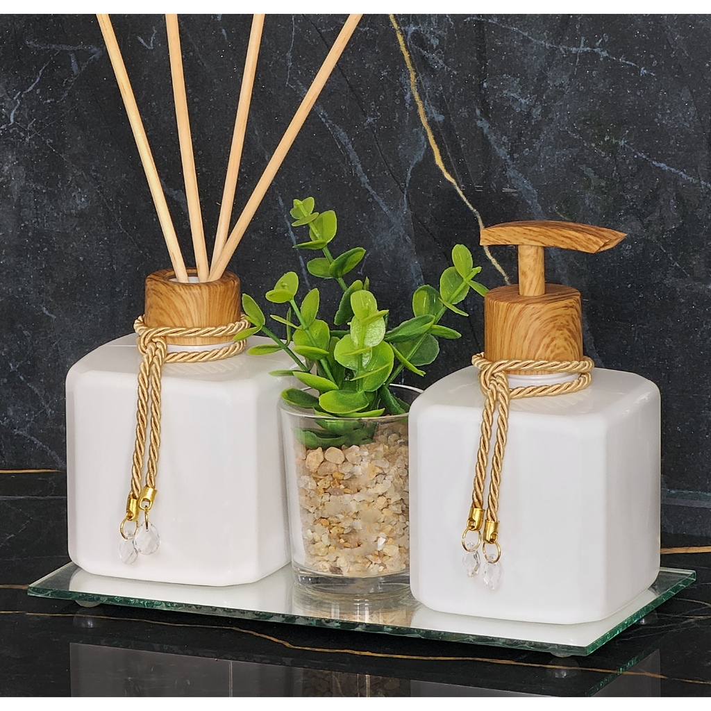 Kit Lavabo Pet Madeira Bandeija Vasinho Decoração Presente Casa Nova Casamento