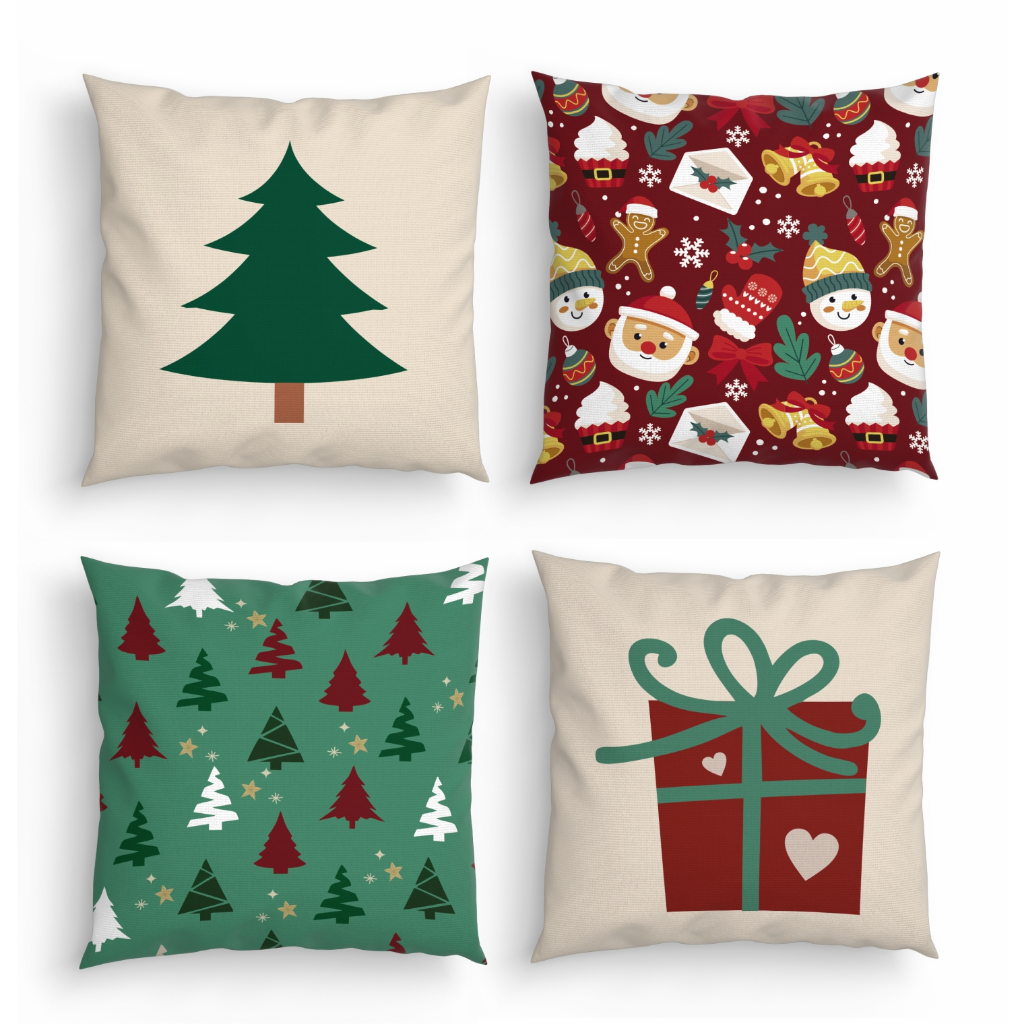Kit com 4 Capas de Almofadas Decorativas Natal 45x45