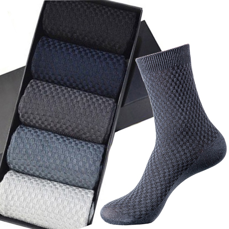 5 Pares De Meias Masculinas De Fibra De Bambu Anti-Bacterial Respirável De Outono Comprida Negócios Casual Tamanho Grande 38-44