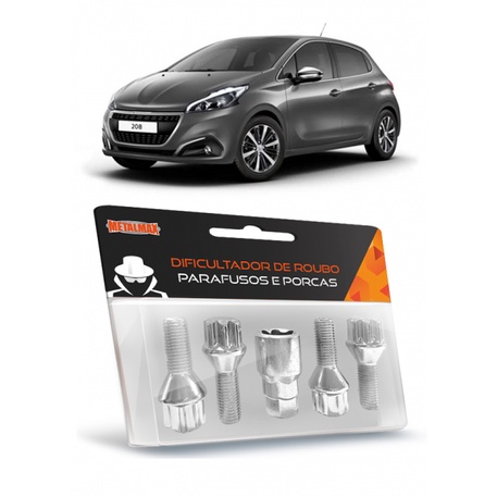 Kit Jogo Parafuso Antifurto Trava de Roda Peugeot 208 Todos Modelos