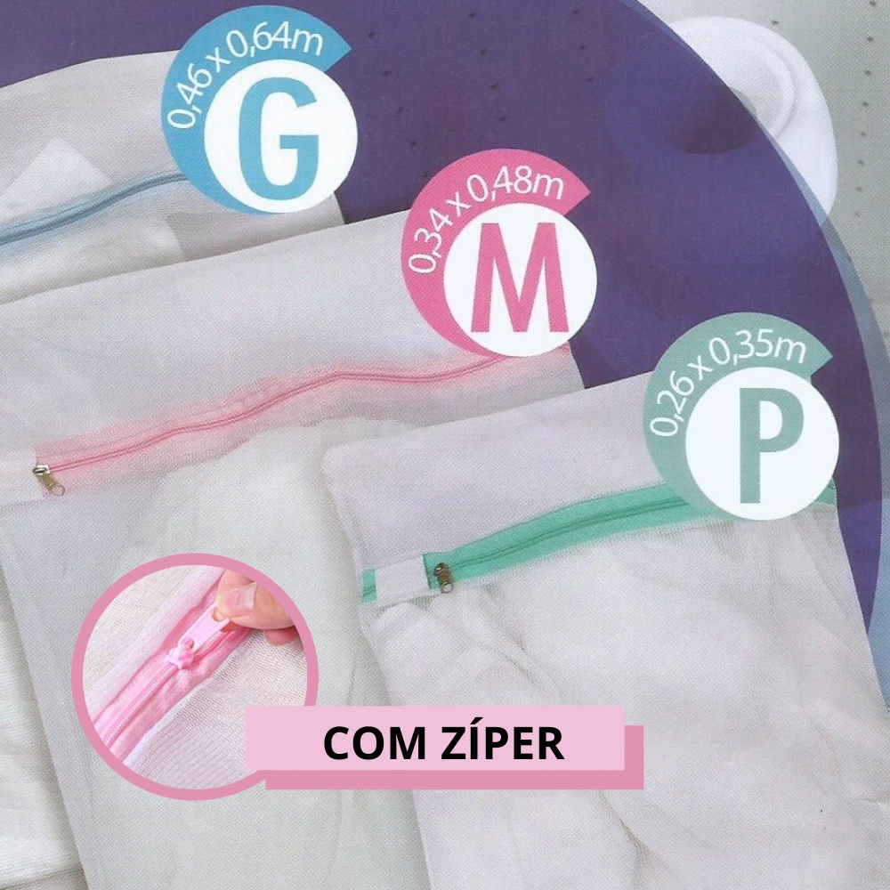 Kit 3 Saco Para Lavar Roupas na Máquina Com Ziper (P,M,G) Protetor de Roupa Íntima Tecido Delicado