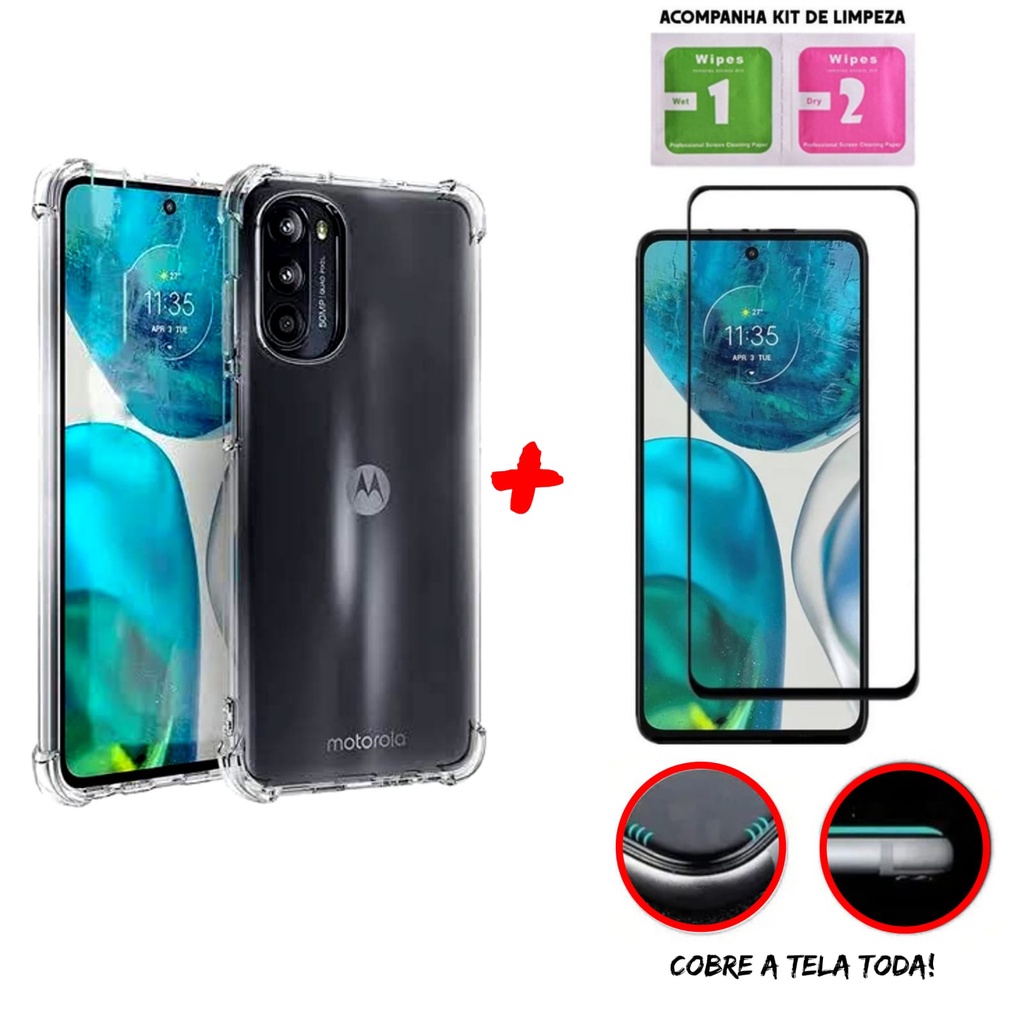 Kit Capinha Transparente Anti-Impacto Para Moto G 52 + Película 3D de Vidro Temperado