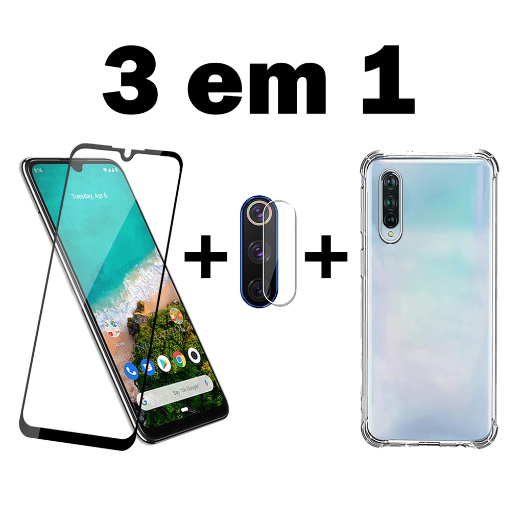 🔝Kit Celular Blindado 📲 Para Xiaomi Mi A3 💥Capa Anti Impacto💥 + Película Frontal 3D + Película da Câmera 📷