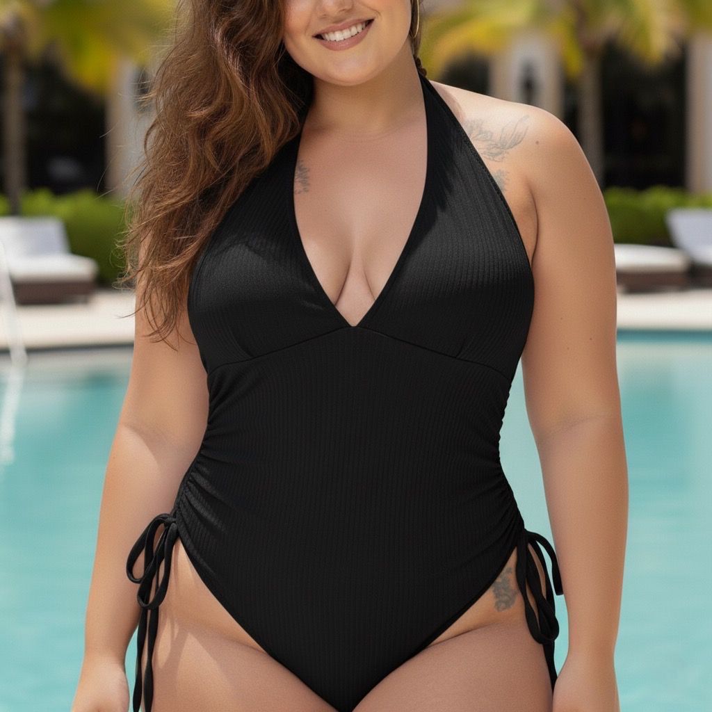 Maiô Feminino Plus Size Regulagem Lateral Básico Liso Moda Praia Grande Decote Sem Transparência