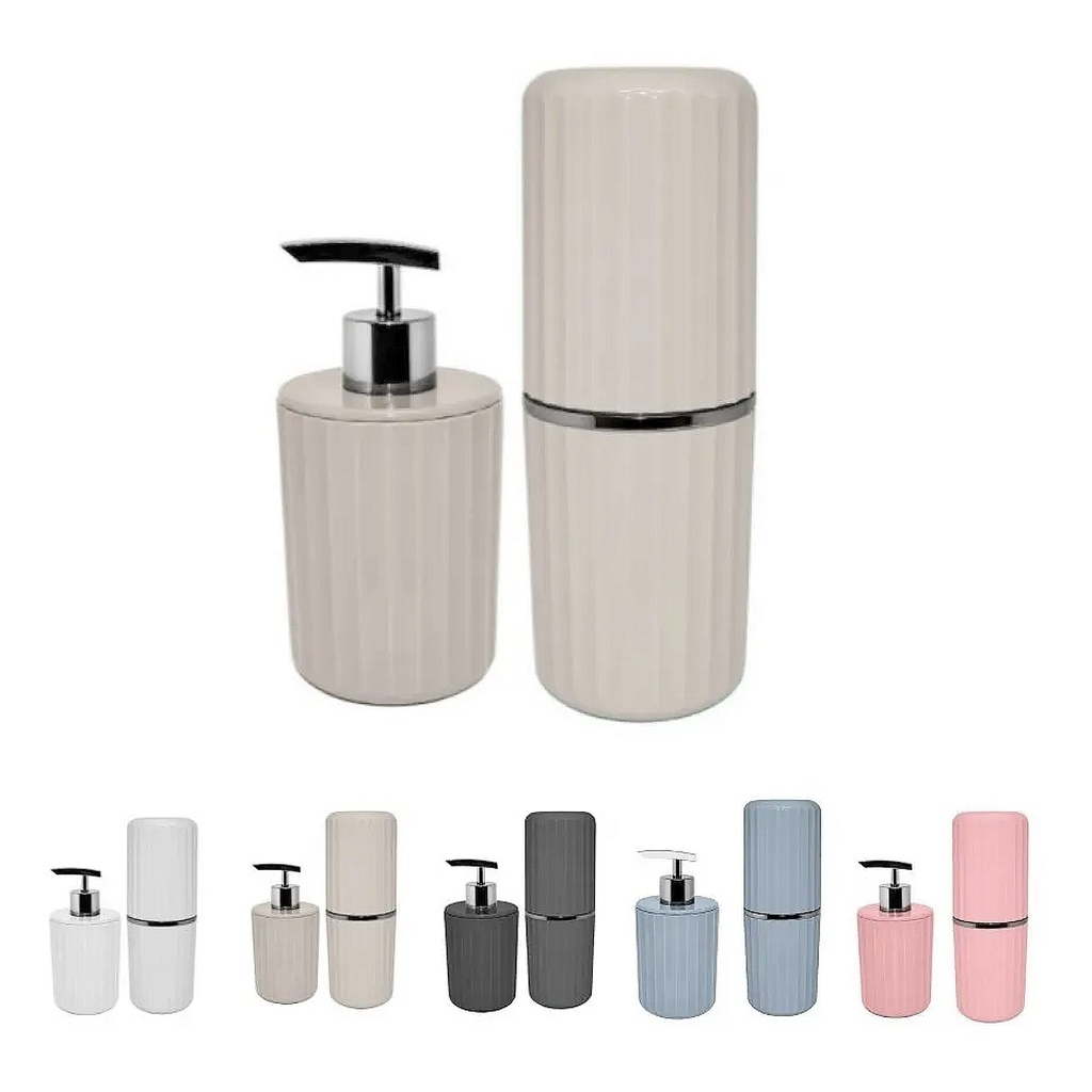 Conjunto Kit de Banheiro Lavabo Porta Sabonete Groove Rosa Quartz Branco Bege Cinza Ou