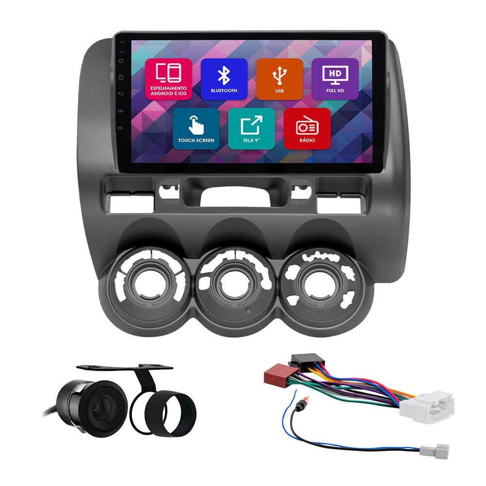 Kit Multimídia 9 Pol Fit 2004 2005 2006 2007 2008 Espelhamento Android Ios 2 Din Grafite Camera Ré