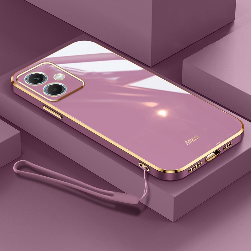 Estilo Luxo De Borda Reta Lanyard Free Case Para Motorola Moto G73 G53 G23 G13 Nova Capa De Telefone Quadrada Com Revestimento Macio