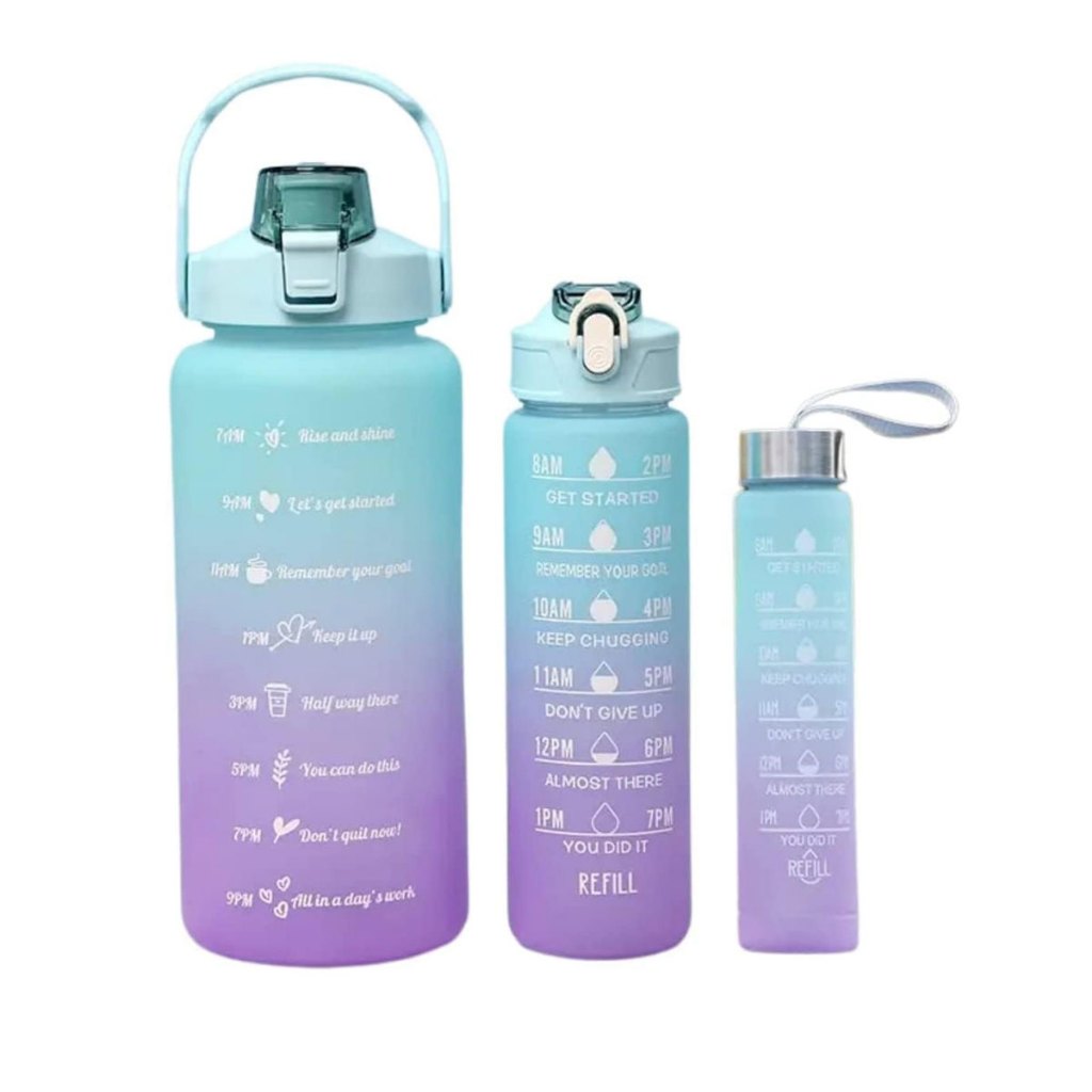 Kit com 3 Garrafas de Água Squeeze Adesivos Animados e Coloridos