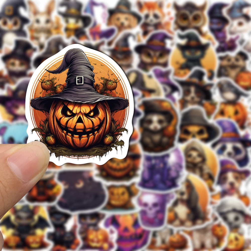 50pcs Adesivos De Halloween Com Tema De horror De Desenhos Animados Conta De Mão Criativa E Requintada À Prova D'água Para iPad Copo De Água