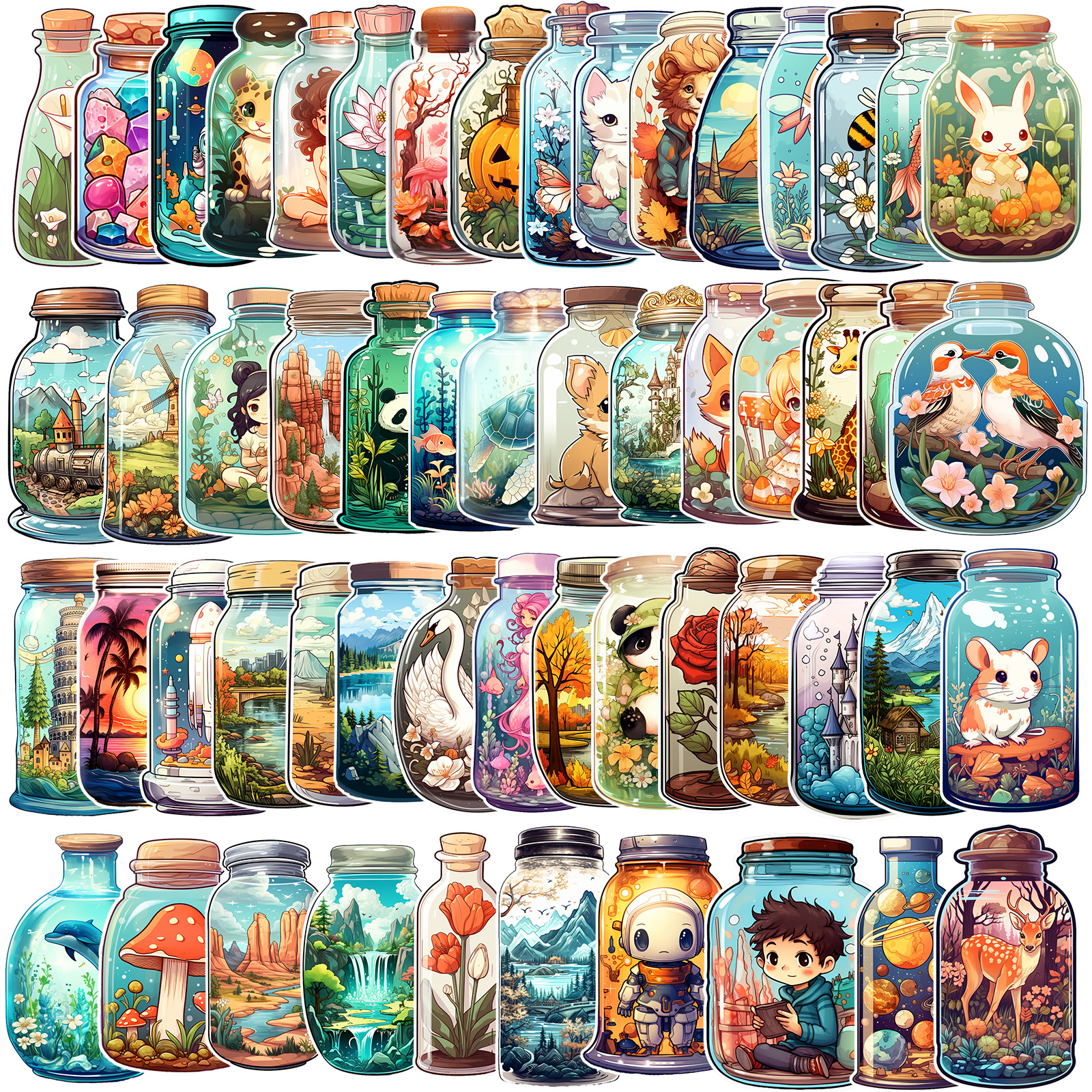 52 Unid . Adesivos Com Padrão Exclusivo De Janela , Criativos Para Animais Marinhos De Vinil Desenhos Animados À Prova D'água , Garrafa De Água , Almofada , Telefone , Laptop , Livro De Recortes E Bagagem