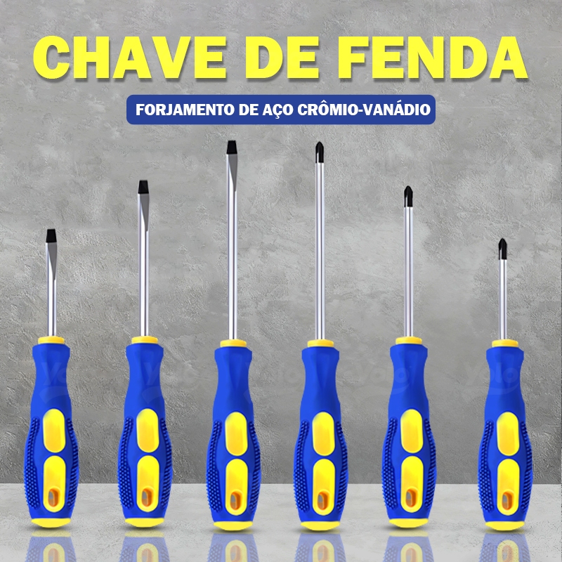 Kit Jogo De Chave de Fenda e Phillips simples em aço Ponta imantadas e cruzada Cabo emborrachado