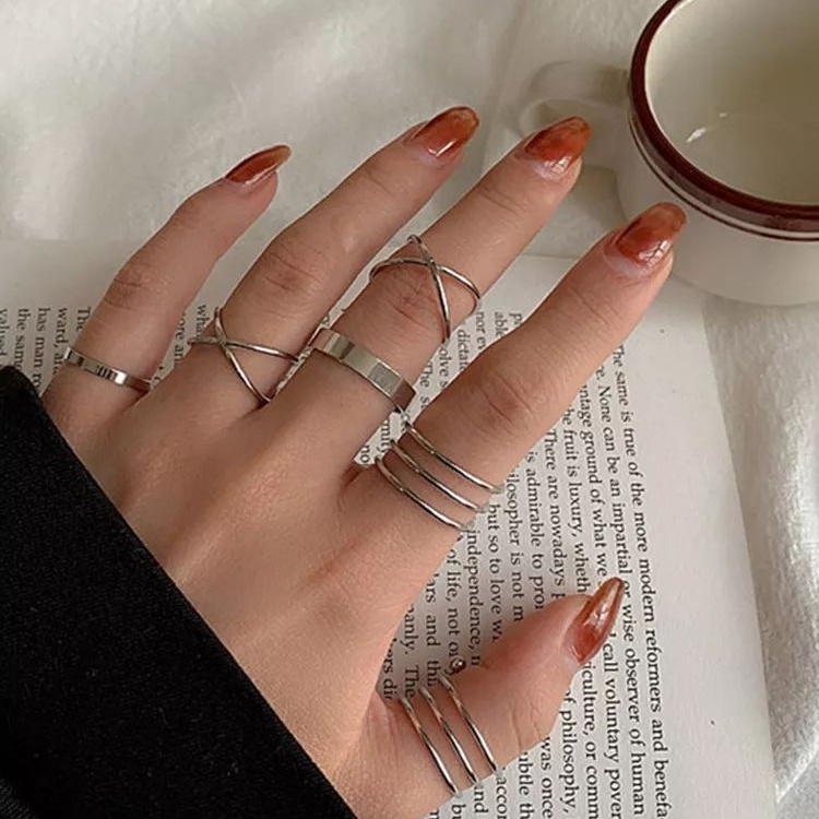 Anéis Diversos Kit Conjunto Anel Ajustável Antialérgico Prata - Feminino/ Fashion Moda Blogueira
