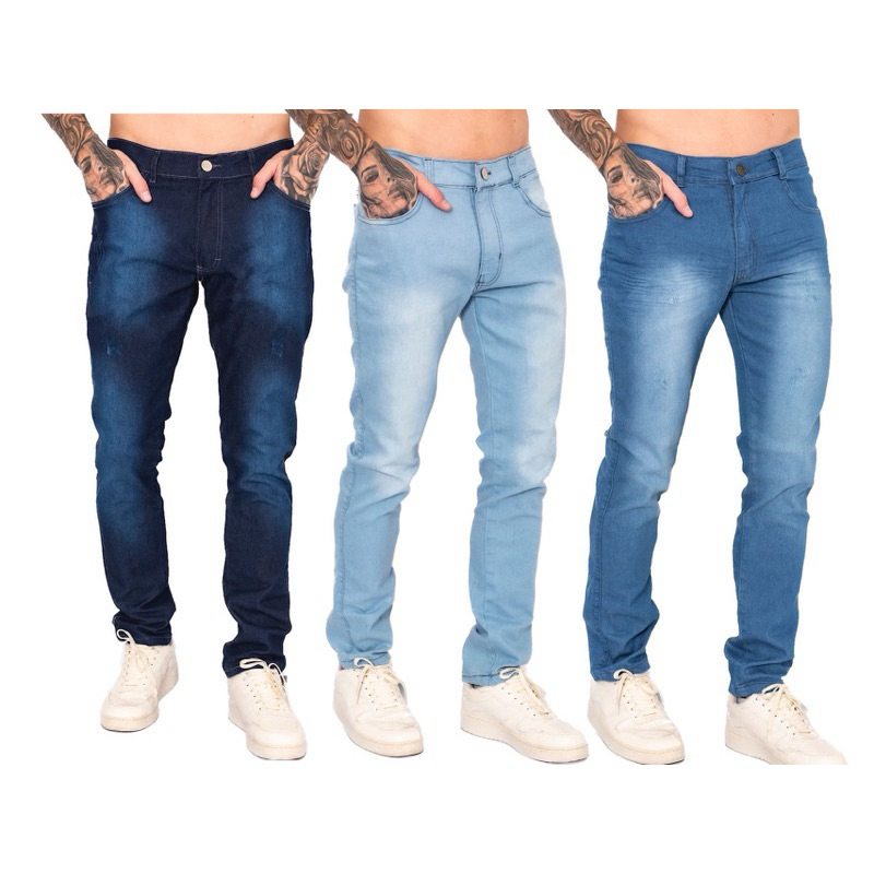 Kit 3 Calça Jeans Skinny Masculina Com Lycra Estica Muito Nf super promoção