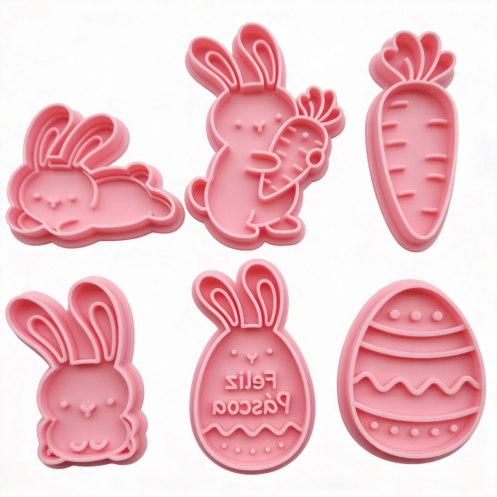 Kit 6 Cortadores Biscoito Páscoa Coelhos Carimbo Confeitaria