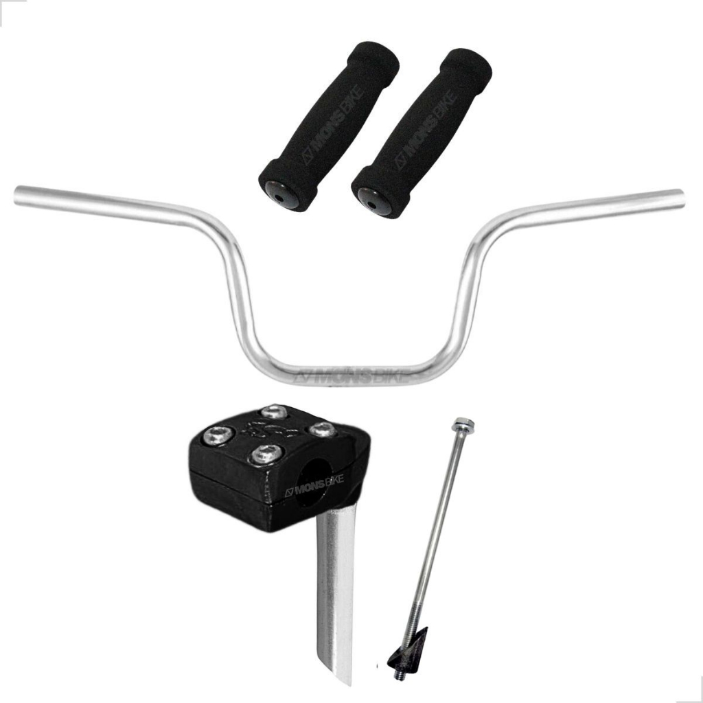 Kit Guidão De Bicicleta Aço Tipo Titan Cg + Mesinha Bike Cross Bmx de Alumínio+ Manopla + Expander