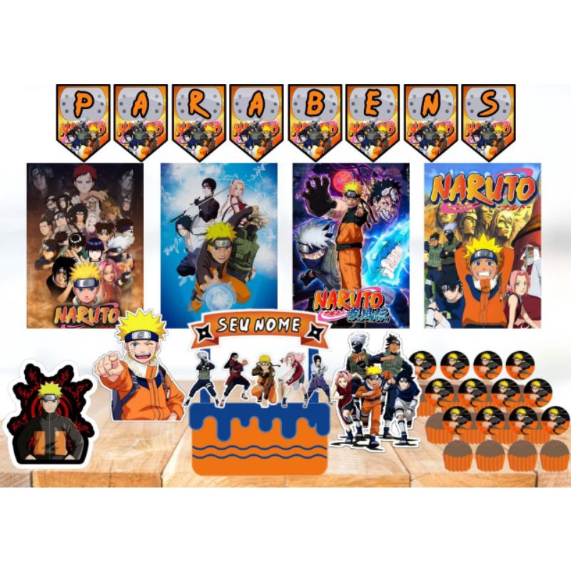 Kit festa monta facil só um bolinho em casa tema Naruto meninos decoração aniversário