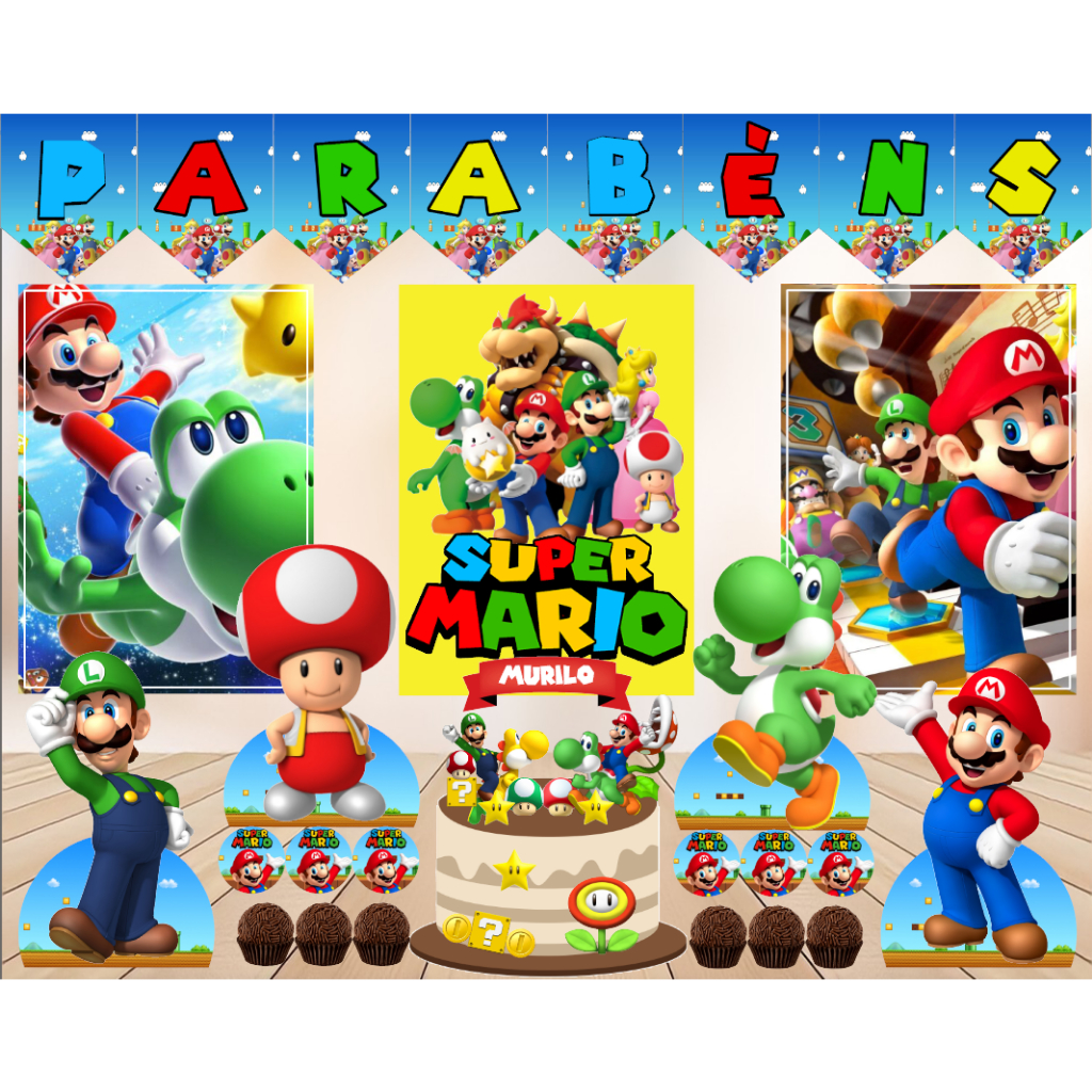 Kit Festa em Casa - Super Mario - Só um Bolinho - Mesversário