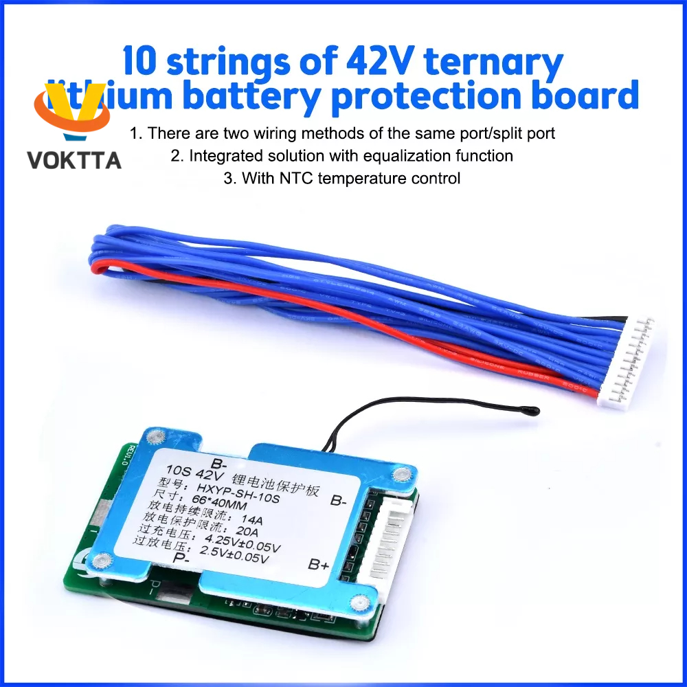 VOKTTA 10S 42V 15A BMS Célula Polimérica 18650 Bateria De Lítio Balanço Da Placa De Proteção Controle De Temperatura Incorporado