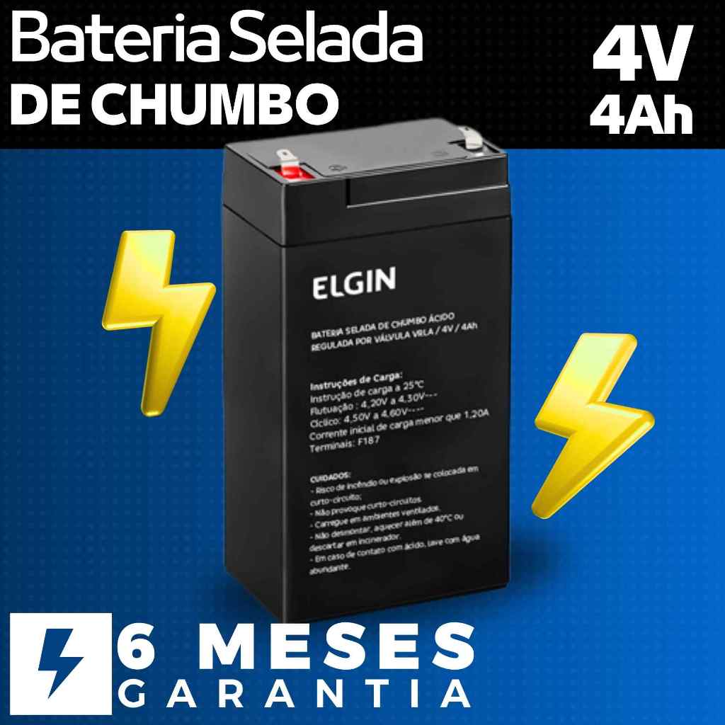 Bateria Selada 6V 4,5Ah Alta Durabilidade Vrla Elgin Original para Nobreak Alarme Som Automação Balanças Iluminação Moto Segurança CFTV Central Cerca