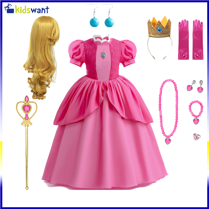 Peach Princesa Vestida De 2023 Nova Moda Cosplay Traje Super Mario Kids Vestuário Para Festa De Aniversário De Menina O Natal De Halloween, Carnival PrincessTraje para Crianças,Conjunto Infantil Menina