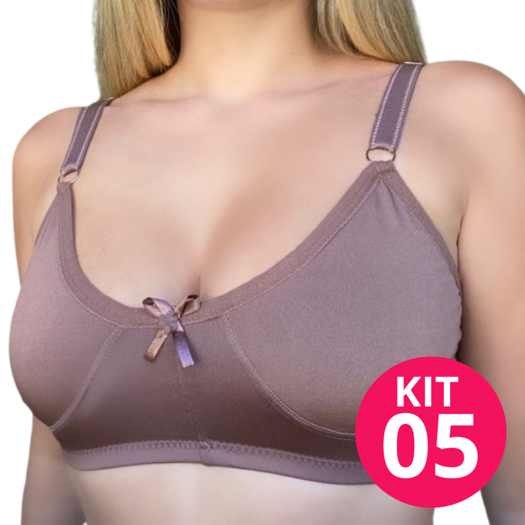 Kit 5 Sutiãs Sem Bojo Reforçado Conforto Básico Boa Sustentação Soutien Giana Alça Larga Qualidade