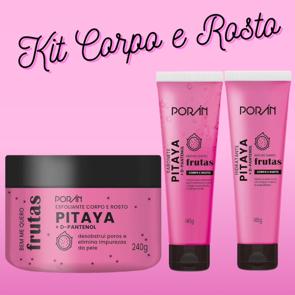 Kit Esfoliante + Hidratante + Sabonete Líquido Corpo e Rosto Pitaya + D-Pantenol Skin Care