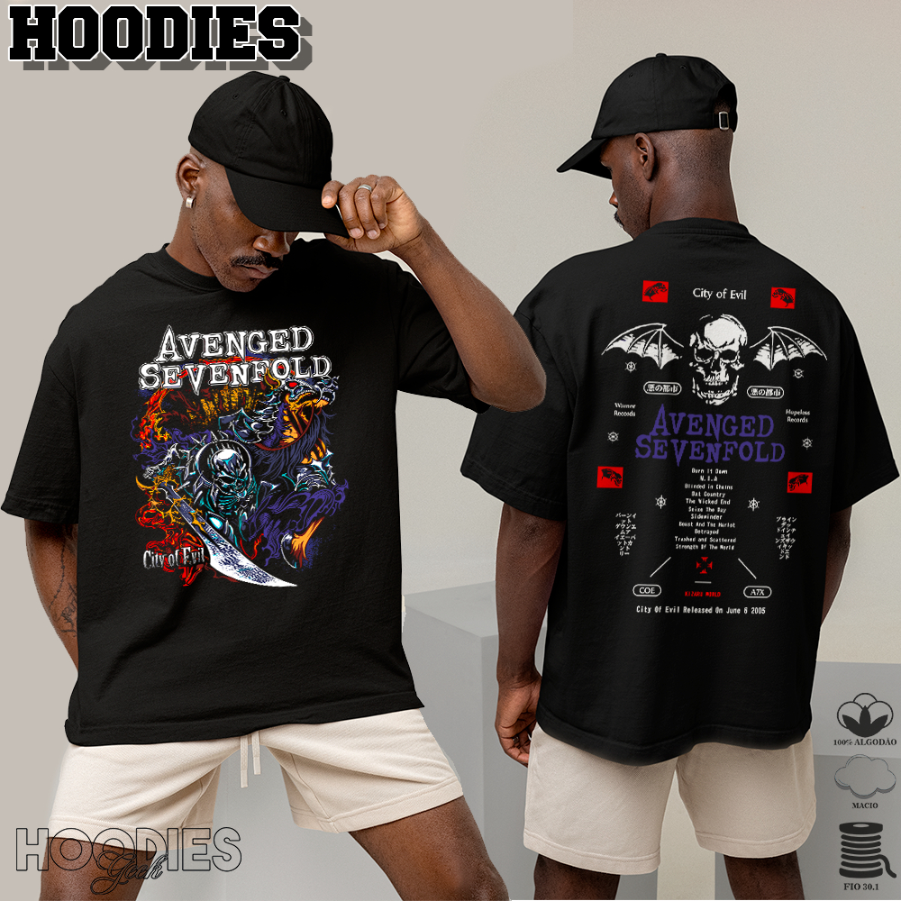 Camiseta Básica Chamativa Algodão Ou OVERSIZED City Of Evil Terceiro Álbum Avenged Sevenfold