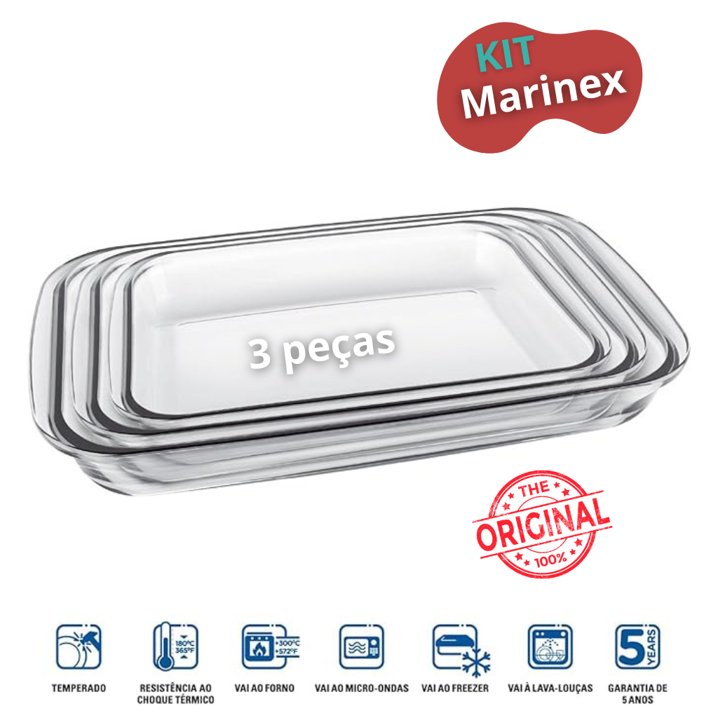 Kit 3 Assadeira De Vidro Marinex Travessa De Vidro Para Forno Pirex De Vidro Refratário De Vidro