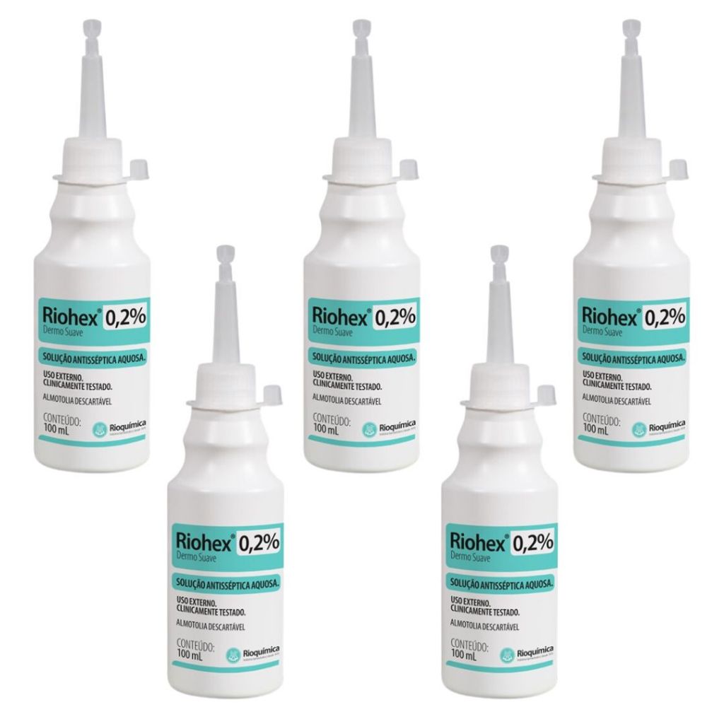 Kit 5 Riohex 0,2% Dermo Suave - 100ml Cada Frasco - Rioquímica