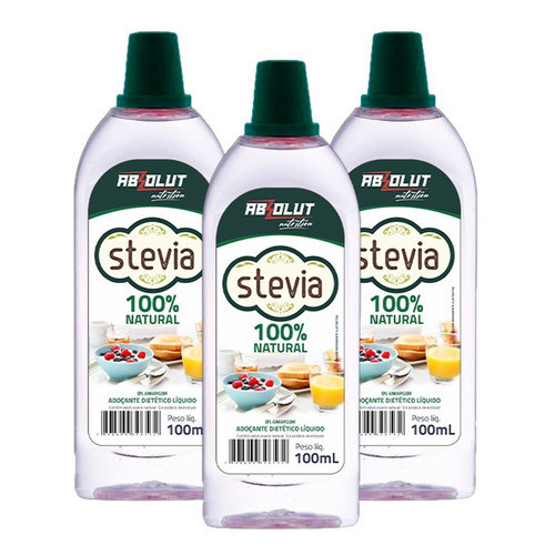 Kit 3x Adoçante Stevia 100ml 100% Natural zero amargor