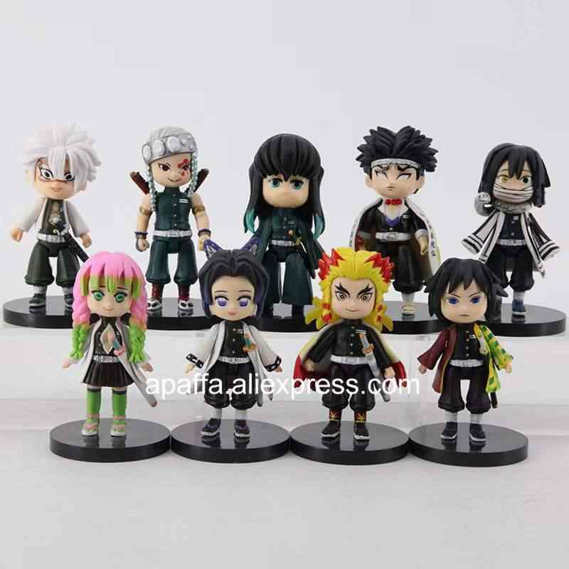 Action Figure Demon Slayer Kit Com 9 Personagens Bonecos Kimetsu No Yaiba Novo