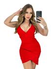 Vestido Curto Alcinha Tecido Duna Frente Única Argola Feminino Com Bojo Babado Amarração nas Costas