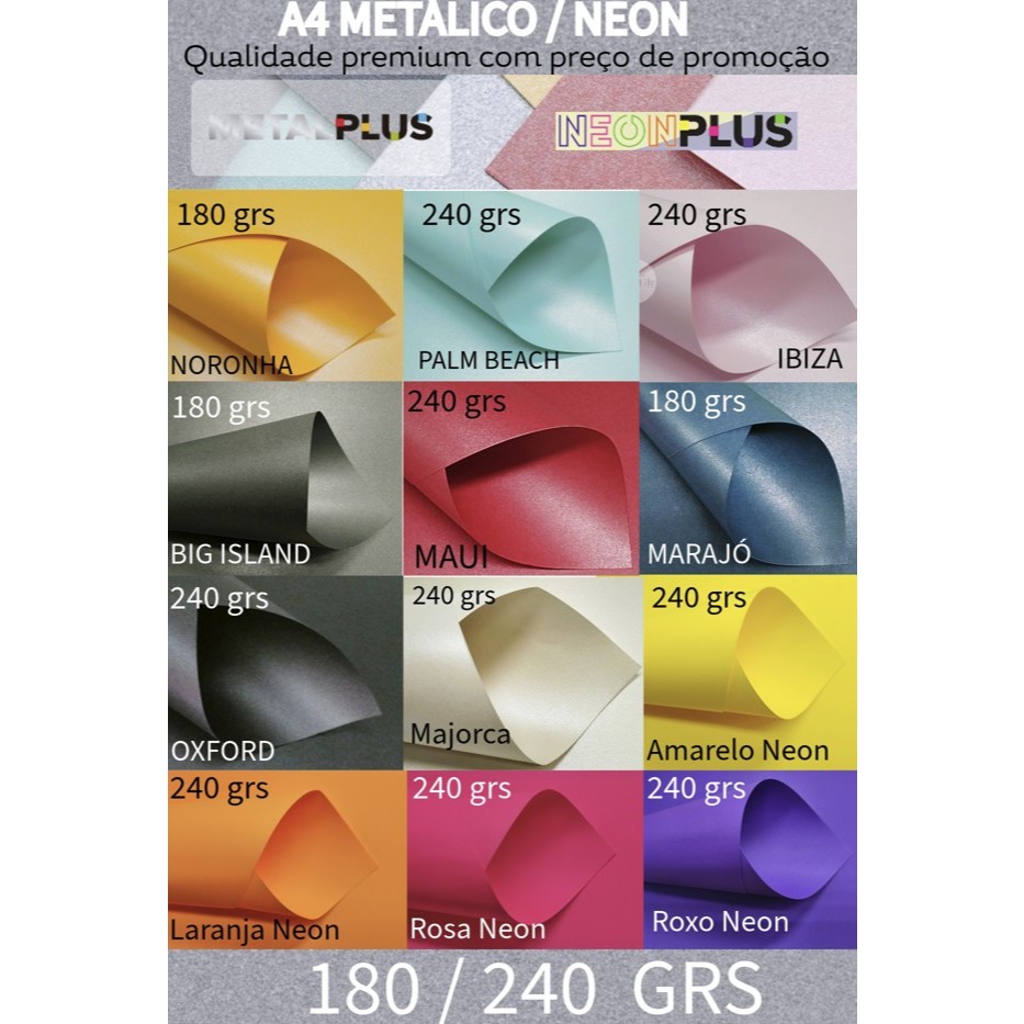 Papel Color Plus Metalizado 180/240 Grs - 50 Unidades - Tamanho A4 - Escolha As Cores