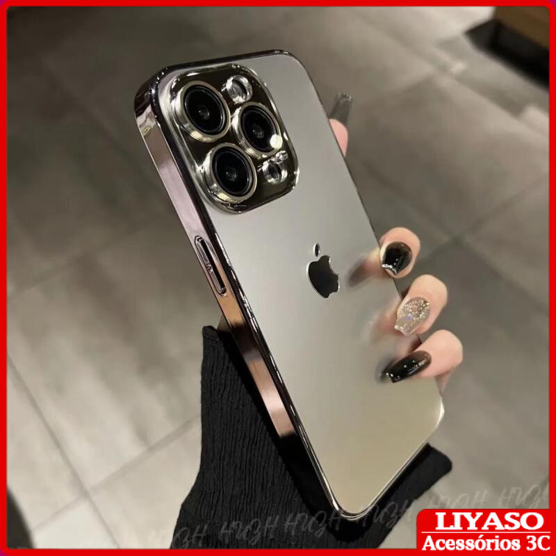 Capa Luxuosa Para iPhone 11 12 13 14 15 Pro Max Com Película De Vidro À Prova De Choque Câmera Traseira