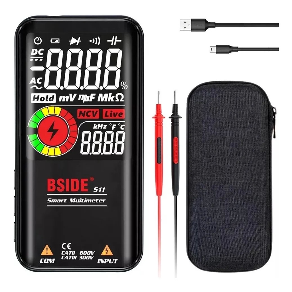 BSIDE Multímetro Digital Inteligente Testador AC/DC Recarregável NCV Sem Contato