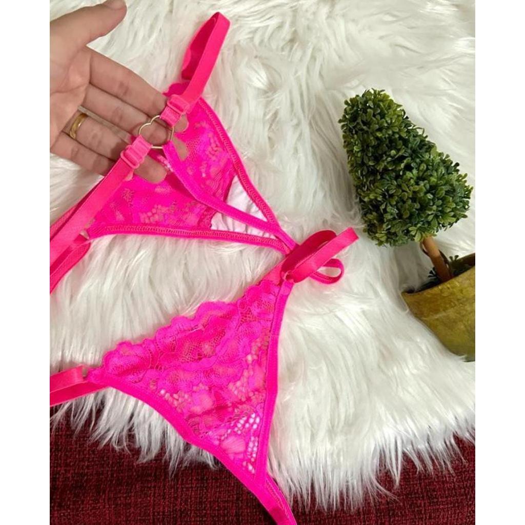 Kit com 5 Calcinhas de Renda Fio Dental com Regulagem de Coração para Revenda Tanga na PROMOÇÃO