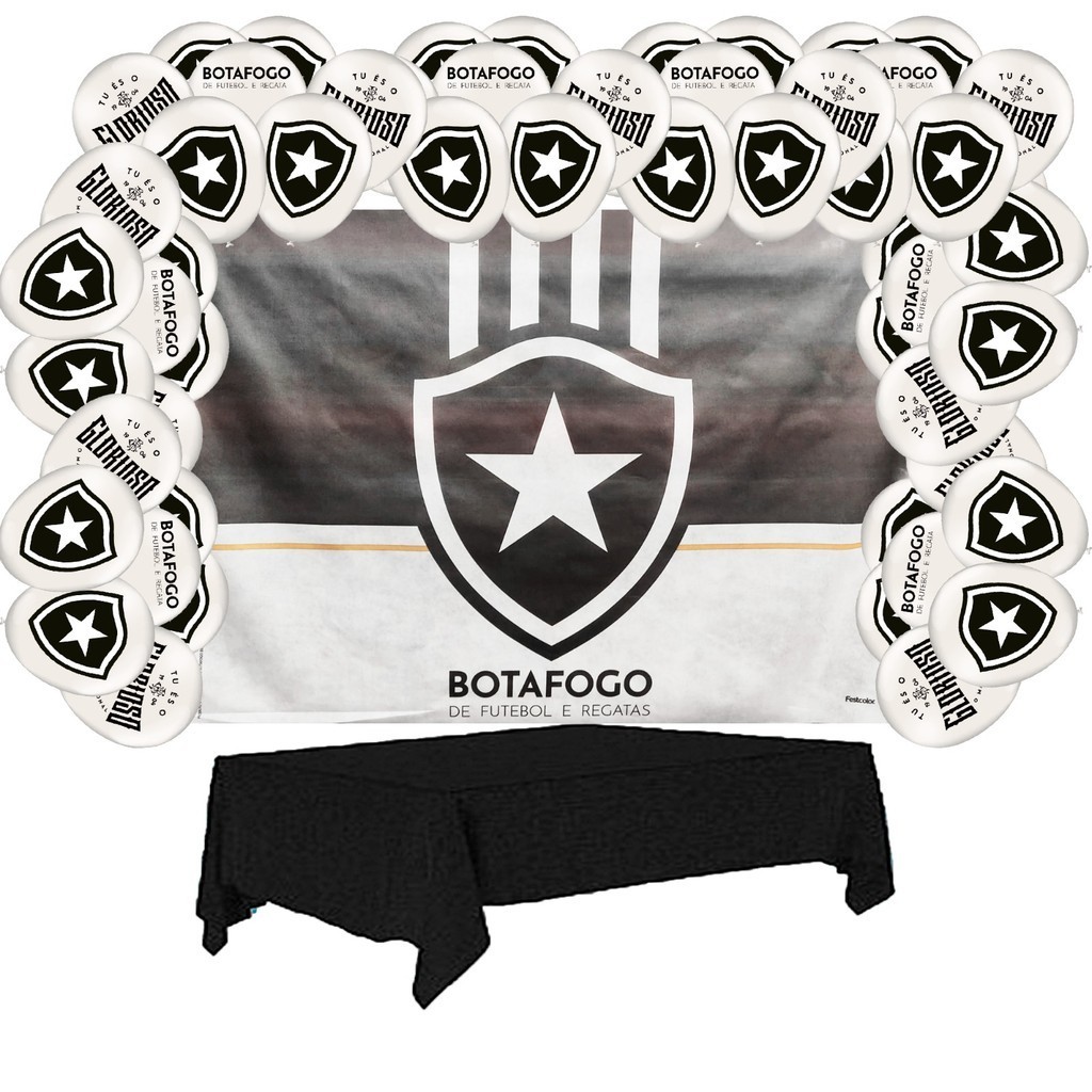 Kit Festa Botafogo Decoração Painel + Toalha preta + Balão