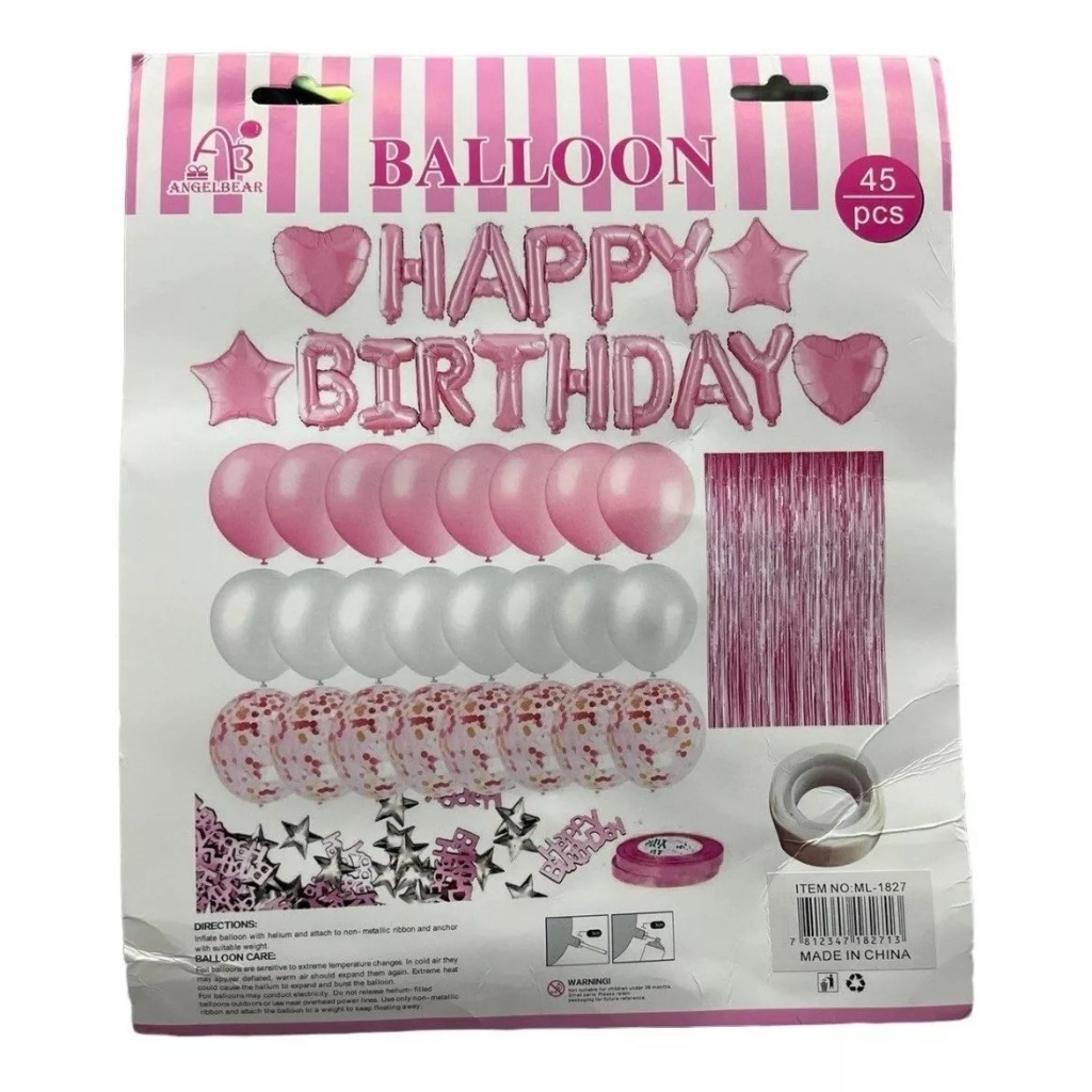 Kit Bexiga Balão Cortina Metalizado Happy Birthday Festa Decoração Aniversario 45pçs - Rosa