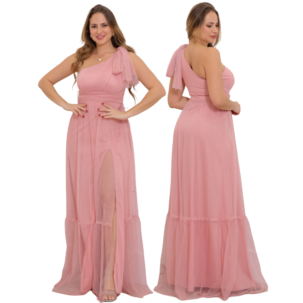Vestido Longo Plus Size Festa Feminino Casamento Madrinha De Um Ombro Só Laço G1 g2 g3