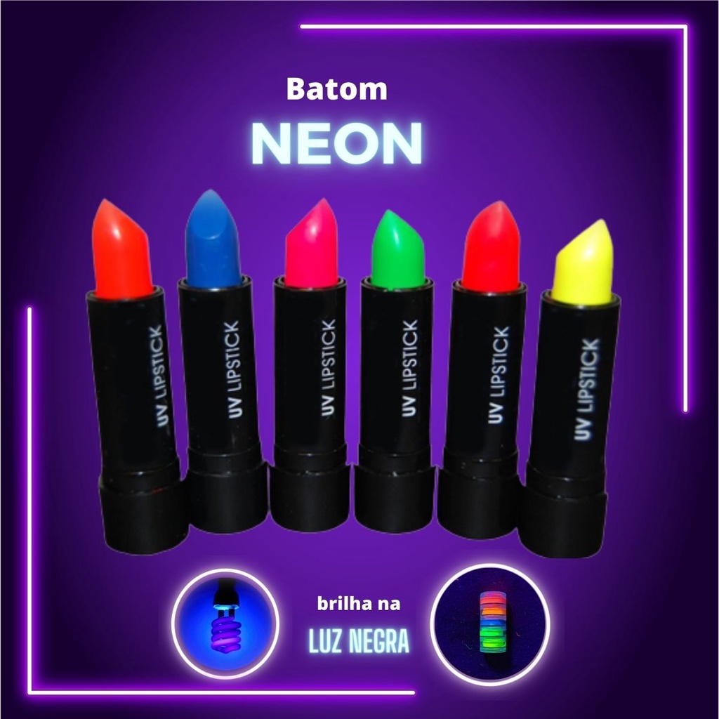 Batom Neon Brilha Maquiagem Fluorescente 5 Opções de Cores