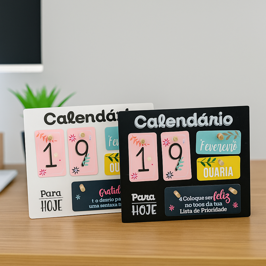 Kit 2 Calendários de Mesa Escritório Calendário Perpétuo de Madeira com Frases