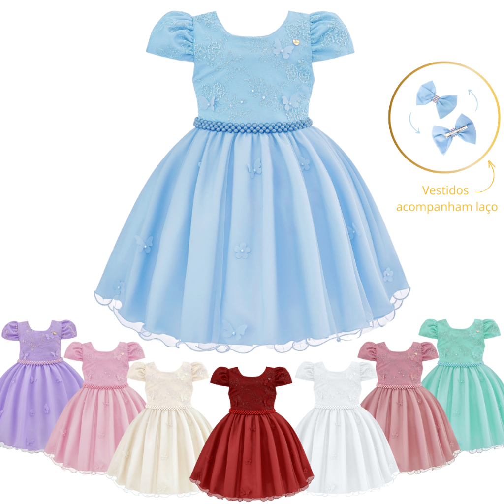 Vestido Infantil De Festa Renda Borboletas Rosa Menina Azul Verde Vermelho Lilás