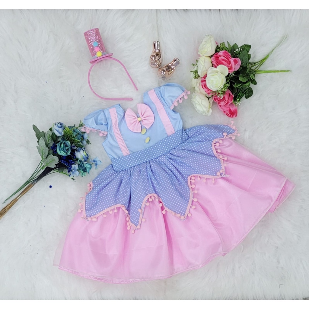 Vestido Infantil de Festa Palhacinha Circo Rosa Luxo Infantil
