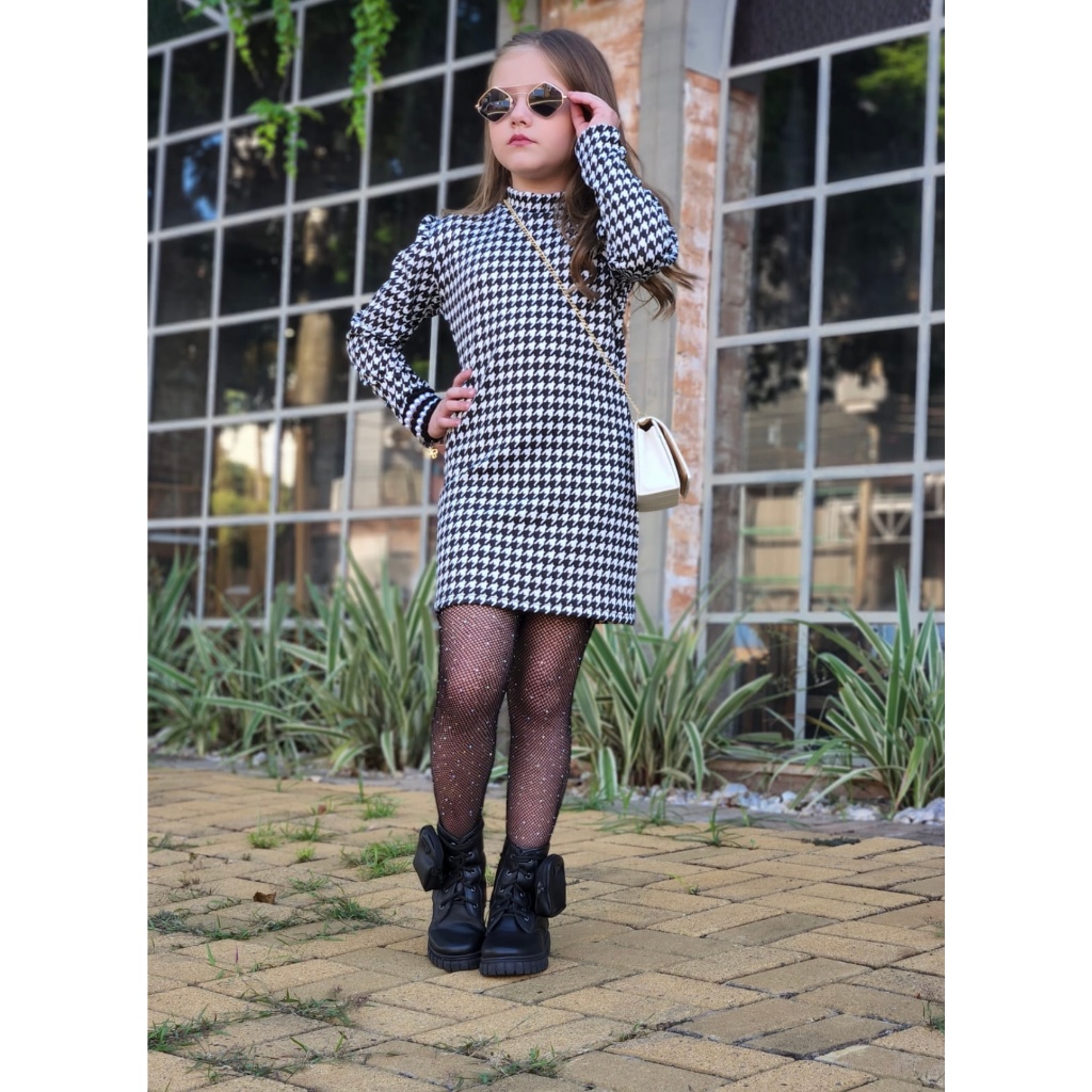 Vestido infantil com alça decotado crepinho criança moda blogueira mini diva promoção